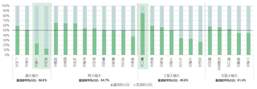 二、充电桩类型层面:“快充桩”需求旺盛,但城市占有量差异巨大