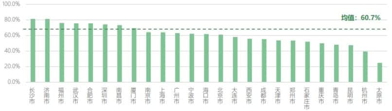 图为:各城市平均桩数利用率<20%的公共桩点位比例