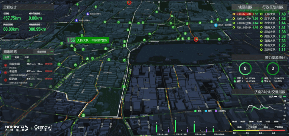 在精准治理方面,创新打造 “精细化路网”服务。该服务是参考济南交通大脑业务需求,编制符合本地业务需求的精细化路网数据标准,可精准描绘交通运行状态,精准识别交通流冲突位置,找到拥堵原因,并制定相关解决方案,实现城市交通拥堵精准治理。