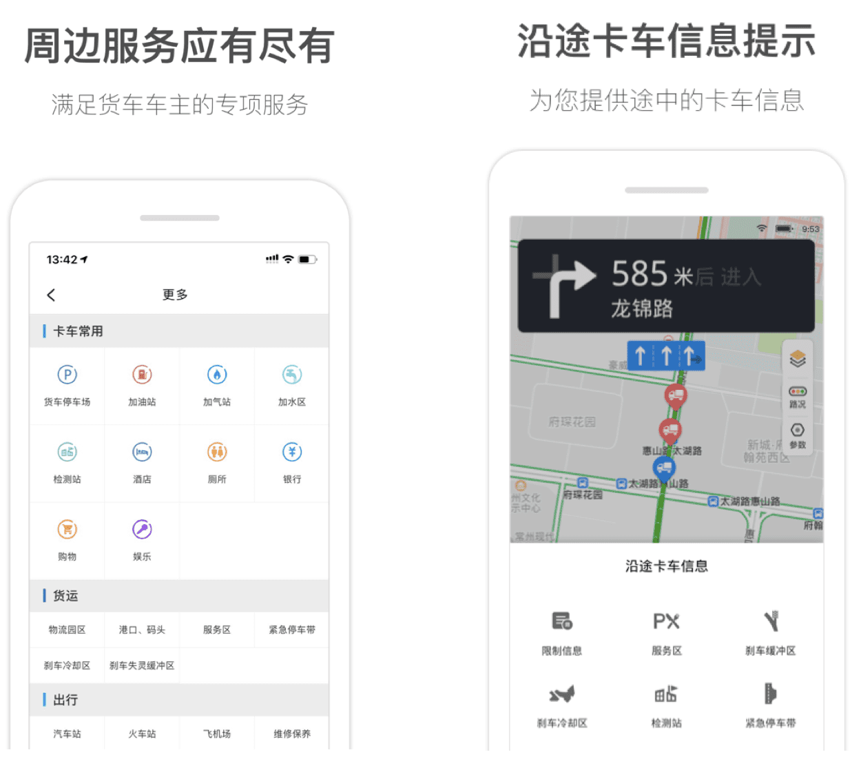 依托四维图新导航地图基础数据、商用车专用地图数据和导航引擎算法,“货车通”形成了一套完整面向C端的商用车导航软件,可为货车驾驶提供全面的货运车辆导航服务。