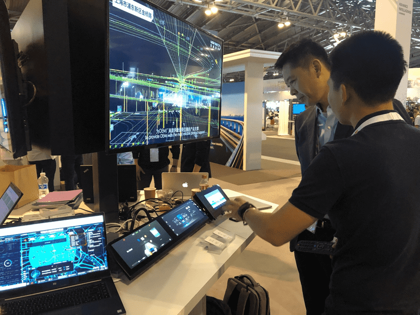 图4:华为智能汽车解决方案BU总裁王军参观四维图新展台并深入了解
