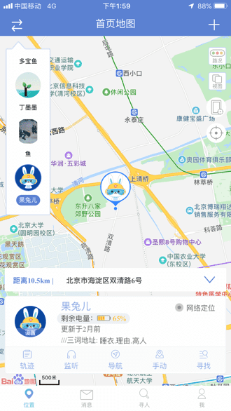 目前,用户可以在万兔思睿旗下果兔家长版、定位123等APP查看到绑定设备的新的定位地址——三词地址,通过三词地址可以跳转导航到设备精准的3米X3米的位置。彻底解决了传统地址太长太复杂、山川、河流、村庄、荒漠、大型建筑物等具体位置不能明确、无法精准定位、无法导航的诸多痛点。