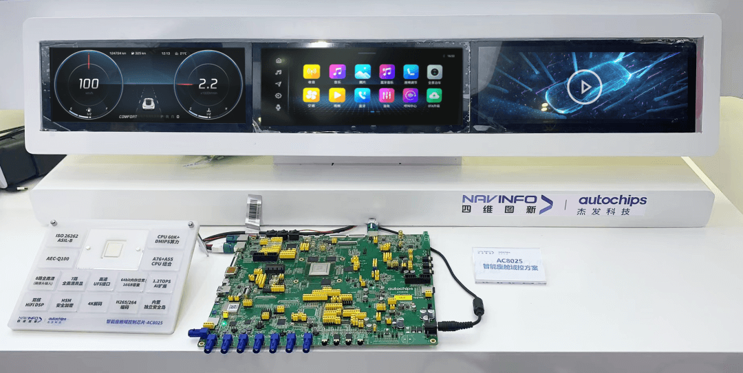 杰发科技AC8015I一体化轻座舱方案也在本次展会上首次亮相,其以高性价比优势吸引了众多企业和专业人士关注。该方案融合了液晶仪表、中控IVI、AVM盒子和有线无线CarPlay手机互联等功能,实现了座舱的整体轻量化和紧凑化,可为OEM厂商和一级供应商提供高性价比、高集成度且功能完整的智能座舱新体验。目前,AC8015I一体化轻座舱方案已获得多家OEM厂商的认可和采用,其使用的AC8015芯片的出货量也于近日成功突破100万颗。