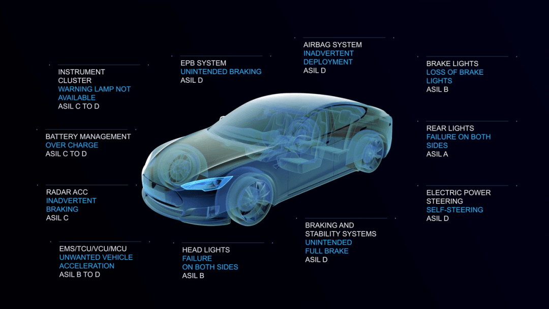 AC7870x系列芯片采用多核Arm Cortex R52内核,主频高达350MHz,可支持锁步核和Hypervisor,提高系统的冗余度和容错能力,减少故障影响,确保系统稳定运行。在功能安全方面,AC7870x首次达到ISO 26262 最高等级ASIL-D,可满足汽车核心ECU的ASIL等级需求,确保汽车电子应用在极端复杂、高风险场景下的安全可靠性。同时,该芯片符合AEC-Q100 Grade 1要求,工作温度范围达到-40~125℃。