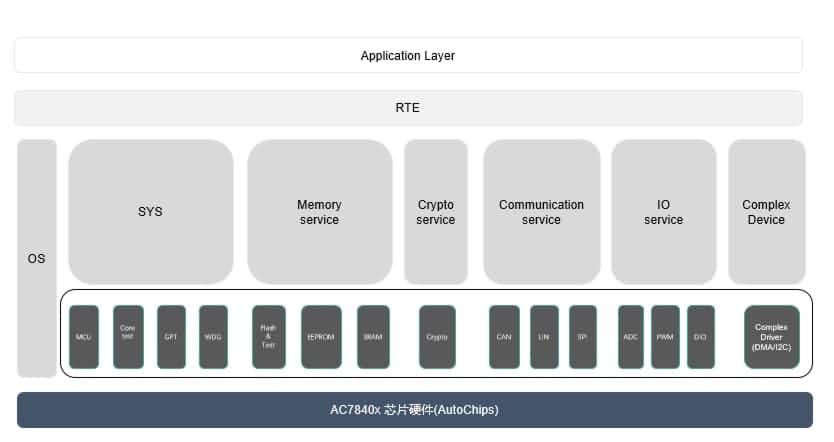 这时,一款支持AUTOSAR的芯片就能帮忙将分层架构高度抽象,使得汽车嵌入式系统软硬件耦合度降低。同时,AUTOSAR天生符合ISO26262的软件架构,是目前为止最符合功能安全设计要求的软件设计架构。有了AUTOSAR,产品就更容易符合客户产品级功能安全的认证和要求。AC7840x支持基于AUTOSAR标准架构的系统开发,可以大幅提高软件复用率,加速开发和维护,优化可扩展系统的成本,方便主机厂或第三方做应用。AUTOSAR规范的运用使得不同结构的电子控制单元的接口特征标准化,应用软件具备更好的可扩展性以及可移植性,能够实现对现有软件的重用,大大降低了重复性工作,缩短开发周期。
