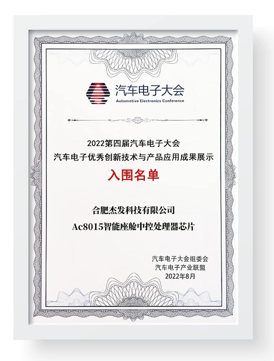 本次大会,杰发科技首颗智能座舱中控处理器芯片AC8015入围“汽车电子优秀创新技术与产品应用成果奖”,以肯定AC8015智能座舱芯片领先的技术和广泛的应用。AC8015是杰发科技首款自主研发的车规级座舱SoC芯片,可用于开发一芯多屏入门级座舱、车载信息娱乐系统、Display Audio、3D液晶仪表等座舱域产品。AC8015已与国内外十余家系统供应商合作,累计出货量数十万颗,量产车型十余款。