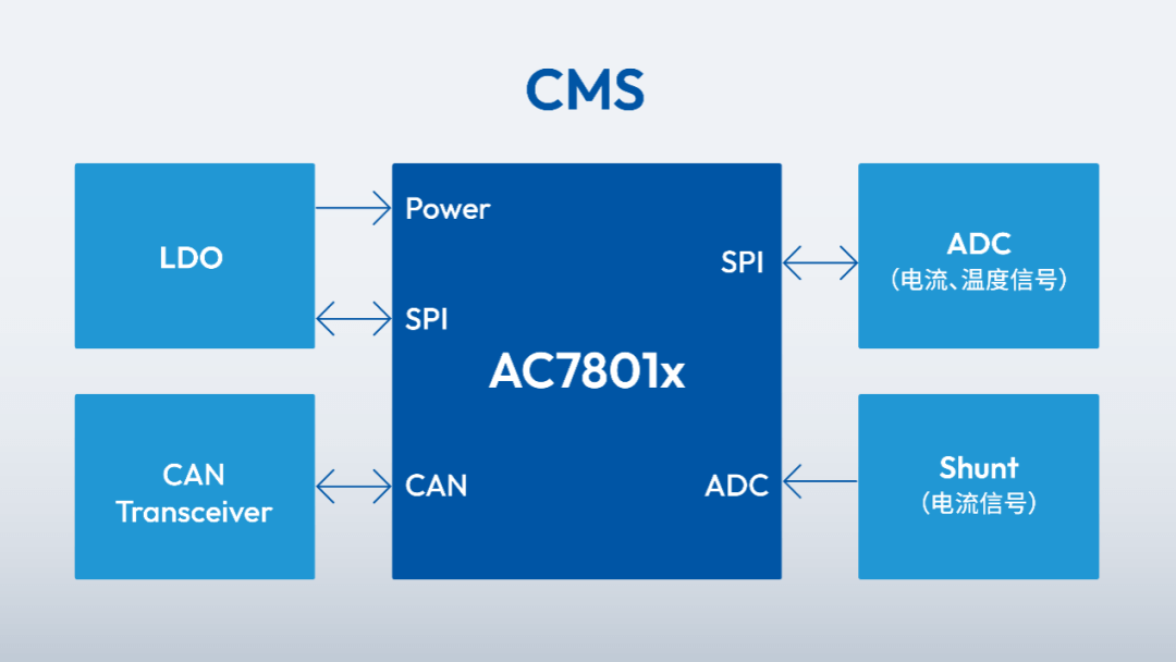 电流传感器(CMS)是主控芯片AC7801x的主要应用场景之一。电池管理系统的性能作为新能源电动汽车的核心,直接关系到车辆寿命、行驶里程、车辆经济性和安全性;电池管理系统监控的准确性和执行动作的可靠性,则依赖各类传感器,其中电流传感器作为最核心的功能之一,对功能安全的要求也越来越高。