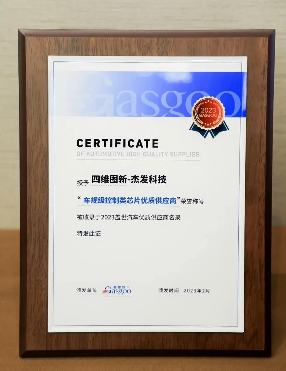 大会同期举行“车规级控制类芯片优质供应商”证书授予仪式,该奖项通过对产品技术含量、市场反响和企业发展潜力综合评估,四维图新旗下杰发科技凭借其高性能、高可靠性MCU芯片荣获“车规级控制类芯片优质供应商”,并被收录于2023盖世汽车优质供应商名录。