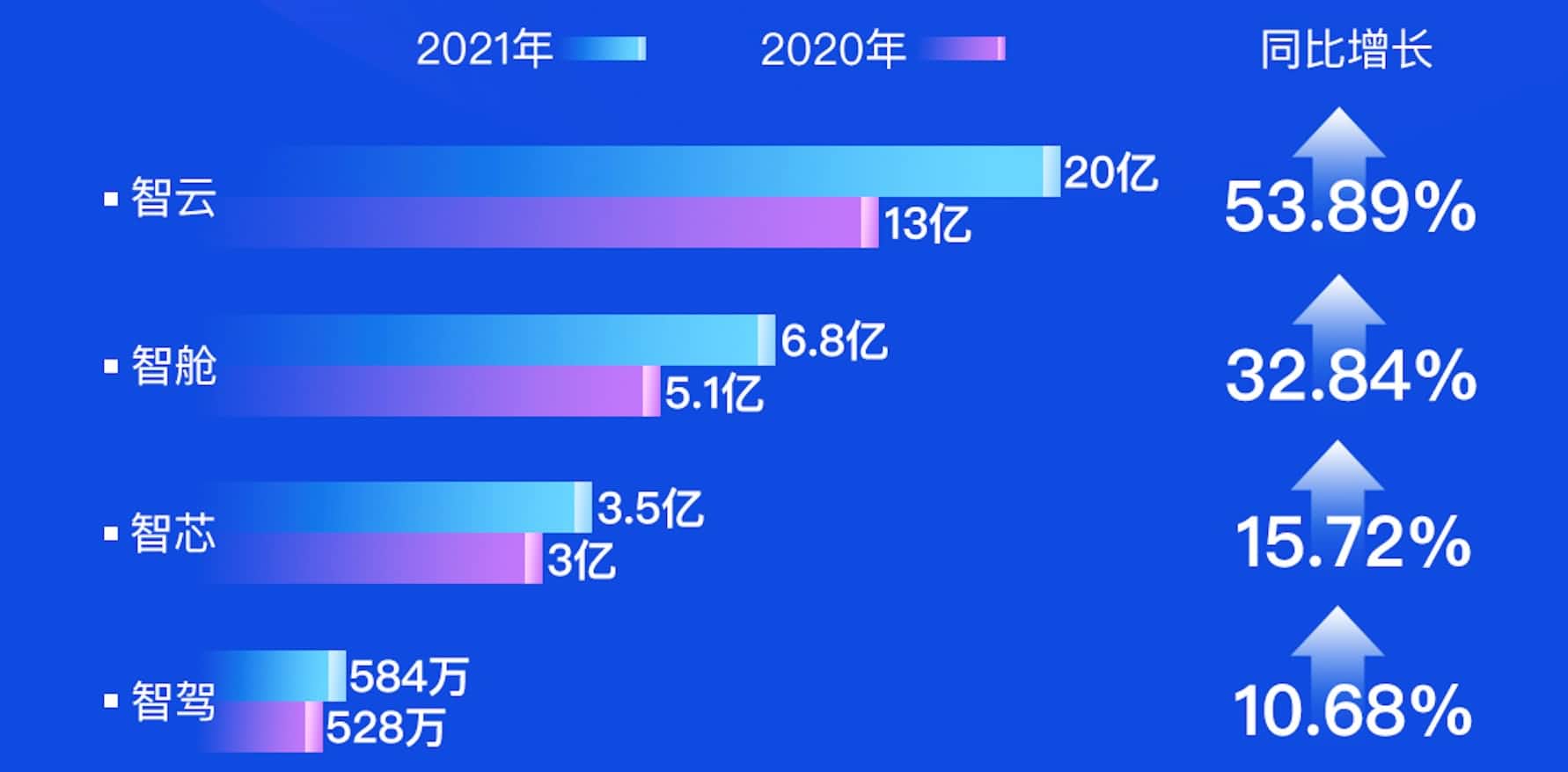 报告期内,四维图新智云、智舱、智芯、智驾四大业务营收分别为20亿、6.8亿、3.5亿、584万,分别同比增长53.89%、32.84%、15.72%、10.68%。