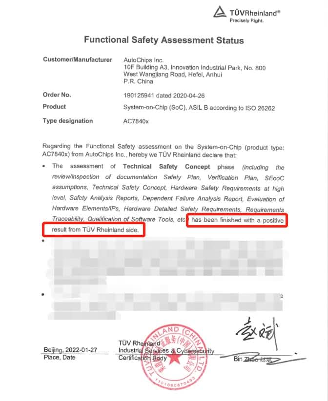 图:杰发科技已完成功能安全阶段性评估报告