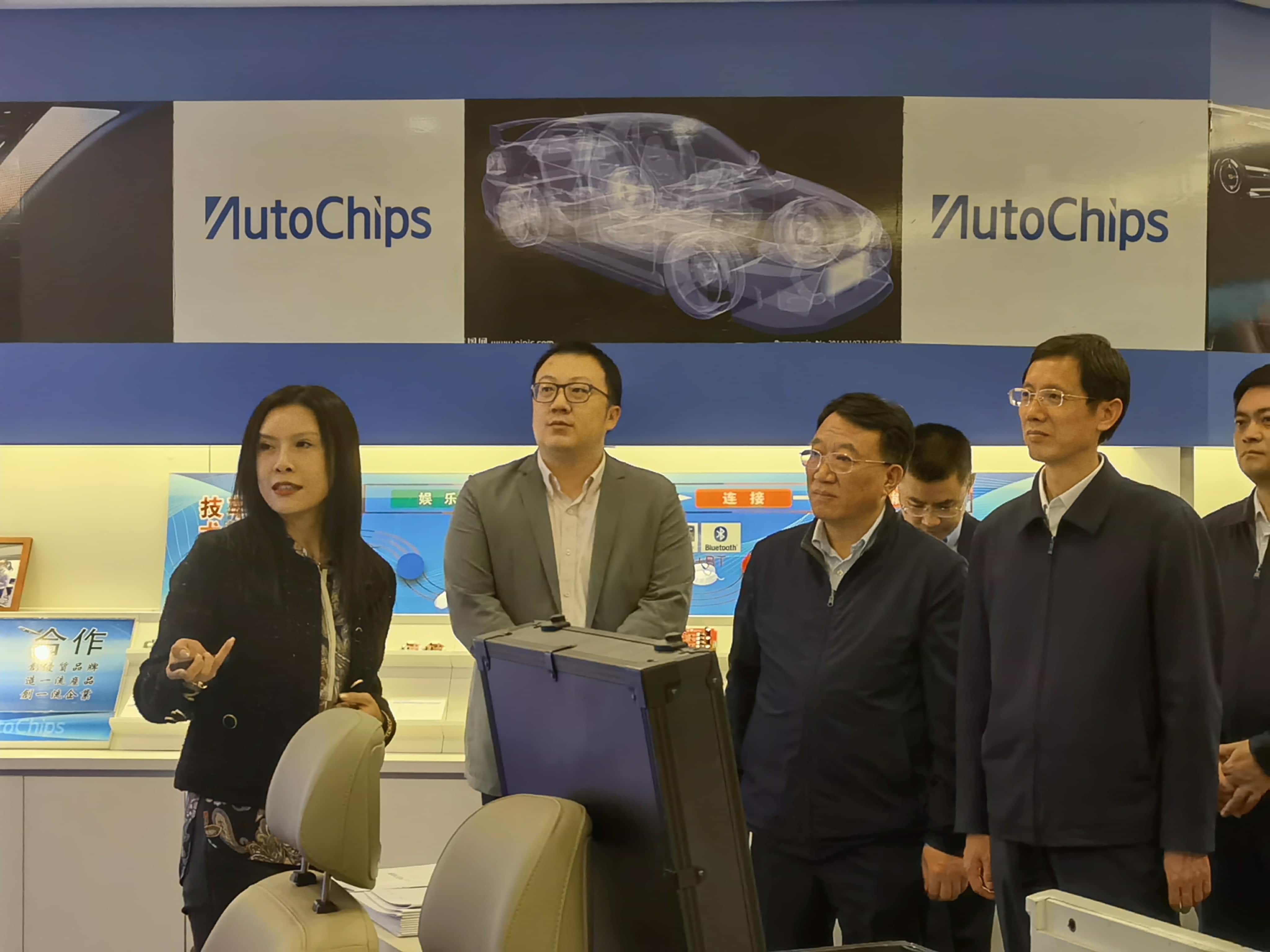 四维图新高级副总裁、杰发科技总经理梁永杰向考察团一行领导介绍了杰发科技的发展历程、产品状况和应用前景,并重点介绍了杰发科技最新量产智能座舱SoC芯片AC8015,同时对杰发科技未来的发展规划和战略布局做了汇报。
