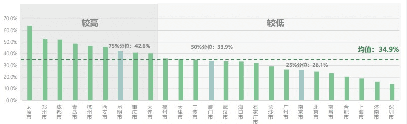 图为:各城市平均桩数利用率<20%的公共桩点位比例