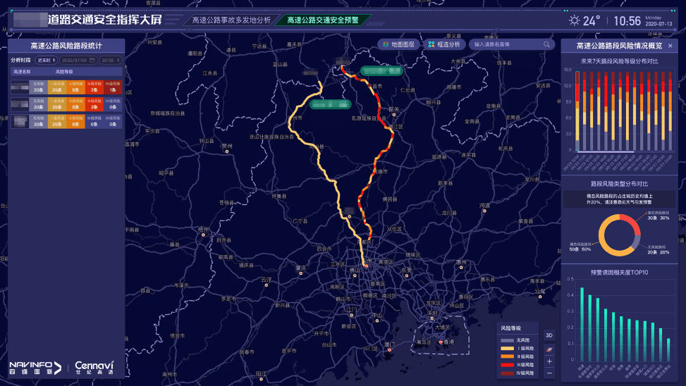 演讲期间,曹晶峥同时就世纪高通在交通安全风险预防方面的相关创新和探索进行了分享。他表示,世纪高通依托海量位置大数据、GIS服务等核心能力,基于道路、气象、事件、事故等多源数据,经过融合分析建模创新打造道路安全风险地图,面向交通安全管理、企业重点车辆安全监管、公众安全出行等道路安全应用场景提供相关服务,可全面服务政府、企业、个人客户。面向不同用户可提供包括道路网结构安全风险评估、高速公路道路安全风险预测预警、车辆安全管理、气象设备布设方案建议、重点车辆出行安全路线推荐、以及公众出行安全提醒等在内的相关道路交通安全服务。