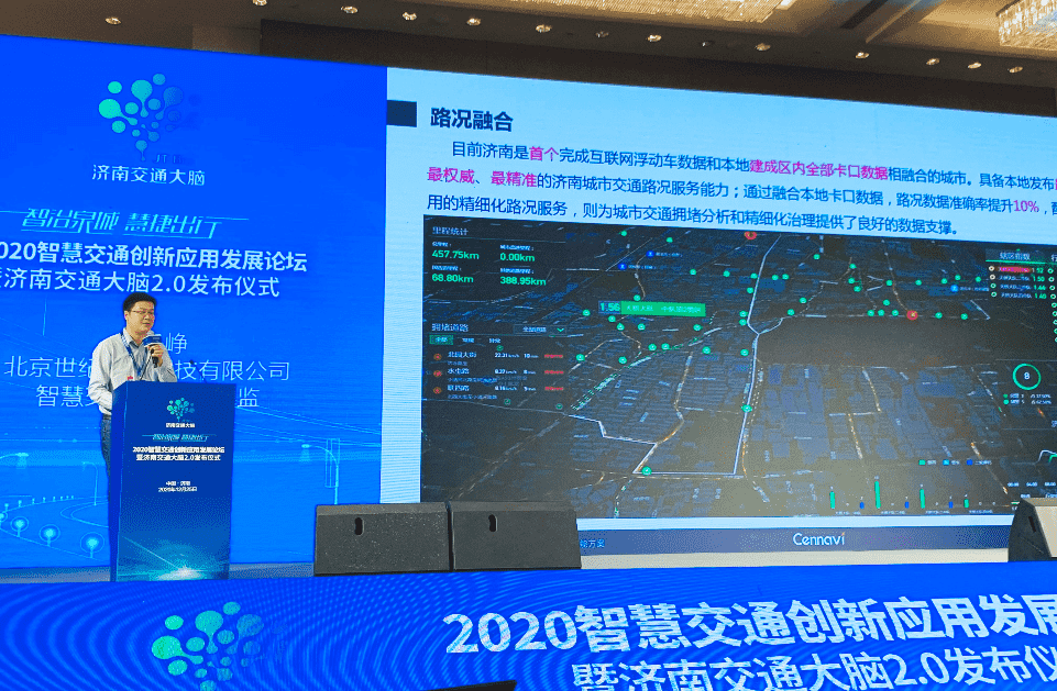 智慧交通事业部副总经理曹晶峥在下午论坛演讲并表示,“大数据、人工智能、互联网等信息技术与济南交通大脑项目的深度融合,为济南交通大脑的优化升级提供了技术支撑。世纪高通以“数据+计算”能力为核心,以创新服务应业主业务需求,赋能济南交通大脑建设,助力智慧交管精细化管理。”期间,他首先就世纪高通位置服务在济南交通大脑建设中相关创新服务进行了现场分享。