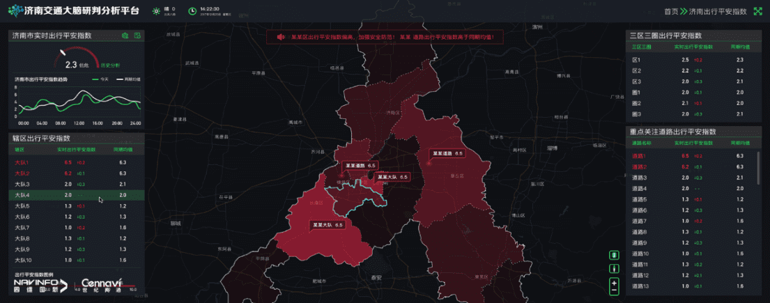 在交通安全预防方面,创新打造“出行平安指数”。该服务围绕安全指数监测、交通事故研判、三急安全隐患排查等展开,可通过安全指数监测,监控交通安全变化趋势,指导勤务响应模式;通过交通事故研判,指导交通管控,有效降低事故率,为交警、公众提供安全服务,让公众出行更安全。