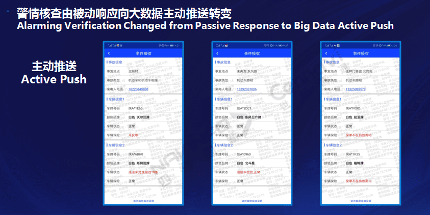 五、警情核查由被动响应向大数据主动推送转变。西安交警深入调研基层民警日常工作中警情核查的实际需求,定制开发驾驶人、机动车、道路三大交管主题分群,搭建弹性云计算中心,支持实时计算发生警情的当事人、车辆、道路的全维度数据,智能生成当事人和车辆的风险等级,精准挖掘当事人和车辆潜在违法行为和交通不文明行为,并将上述生成的全量数据实时推送至民警掌心智能终端,推动警情核查由被动响应向大数据主动推送转变。