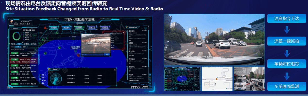 西安交警“智慧战车”可实时回传警车前方视频画面。根据基层民警工作需要,西安交警定制开发的一款融合人工智能、大数据、互联网+等先进技术的智慧车载终端。主要目的是实现可视化指挥、辅助民警执法、主动预警风险等级、保障民警安全等创新功能。现已部署警车340辆,可实时语音下达指挥调度指令,实时回传视频前方视频画面。
