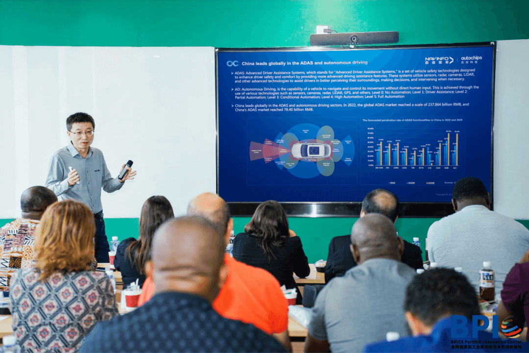 11月30日,2023年金砖国家新工业革命技术与治理卓越人才培训班(下称培训班)到访四维图新旗下杰发科技参观交流,杰发科技常务副总经理段涛、首席技术官李文雄、副总经理王璐对培训班一行表示热烈欢迎,并全程陪同接待。