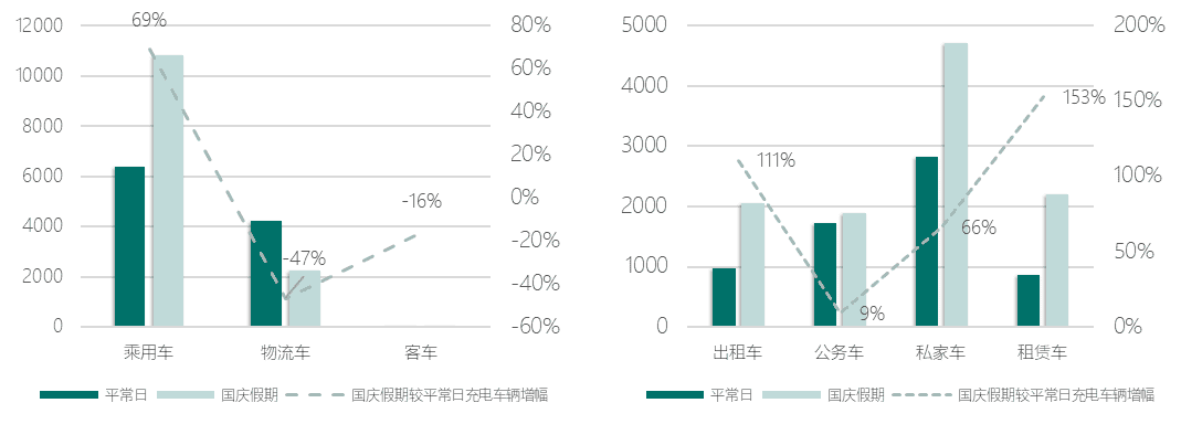 图4 高速充电站2021年国庆假期和平常日充电车辆类型对比